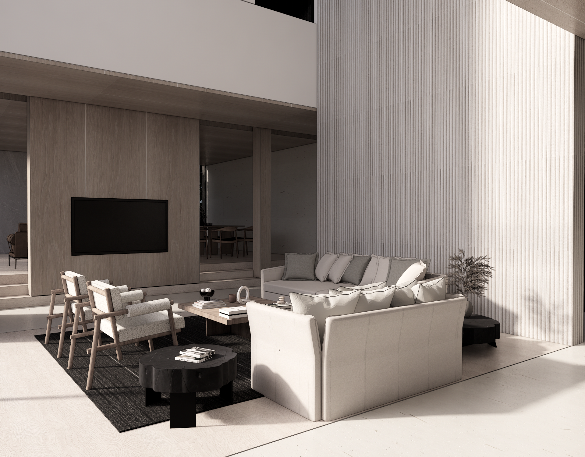 Located in a prime prestigious area in Dubai Hills where residents can enjoy the framed view of Burj Khalifa from their living spaces, all these spaces were seamlessly positioned in a way that separates public spaces from private ones in a very subtle matter for guests to feel welcomed yet complex layers of spacing creates separation zones, this sophisticated scheme comes in respect for all supportive functions without interfering the circulation flow. Then comes the natural lighting, double-height ceilings, terraces and green roofs as the second most important component in crafting these spaces, where the architecture blurs the boundary between external and internal spaces by introducing a semi-external area around the pool, family living spaces and master bedrooms.